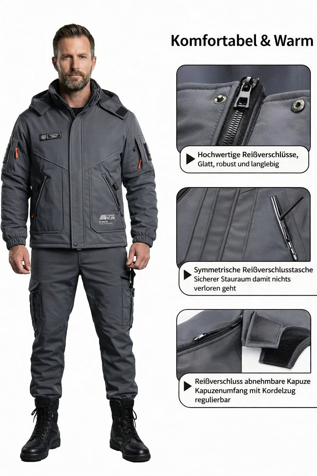 • Verstellbare Bündchen und Saum