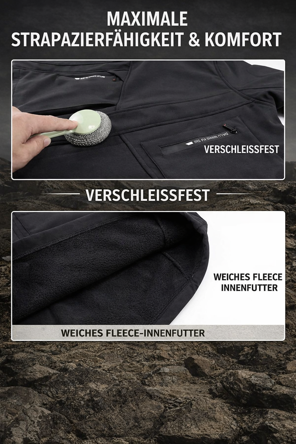 **Weiches Fleece-Innenfutter** Ein flauschiges Innenfutter spendet sofortige Wärme und bietet höchsten Tragekomfort direkt auf der Haut.