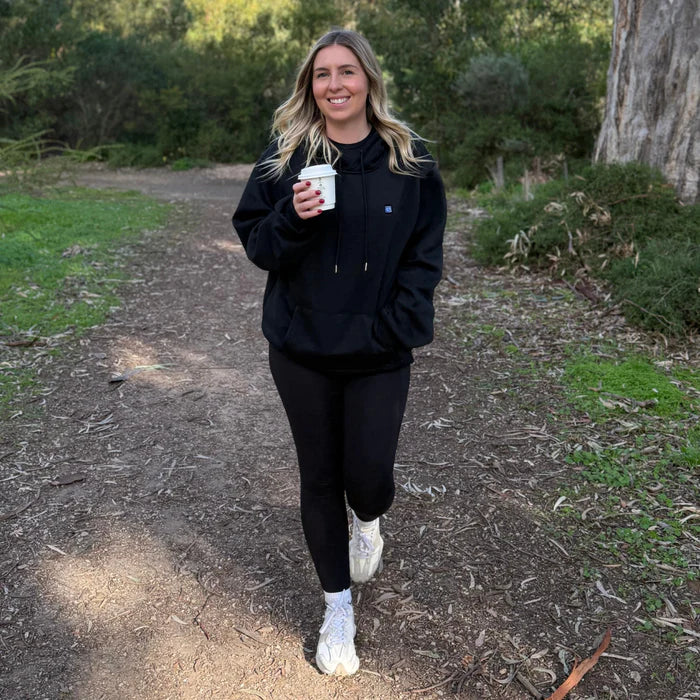 Wähle dein ideales Wohlfühllevel mit drei Heizstufen. Der weiche und atmungsaktive Stoff fühlt sich an wie eine Umarmung, während die wiederaufladbare Powerbank dir bis zu 3 Stunden wohltuende Wärme schenkt.