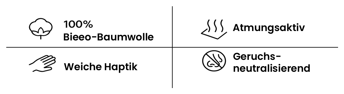 • Glatter, mikroelastischer Bund – Bietet eine sichere, bequeme Passform, die sich Ihren Bewegungen anpasst